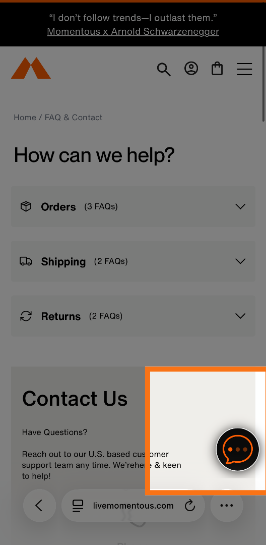 1. Select "Contact us" at the bottom of the website