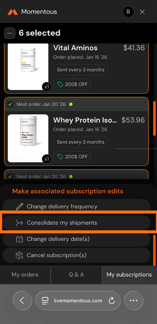 6. Select Consolidate my shipments